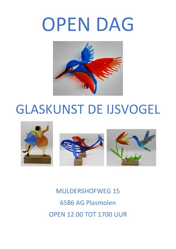 Kom genieten van de kleurrijke glaskunst van atelier Glaskunst de IJsvogel.