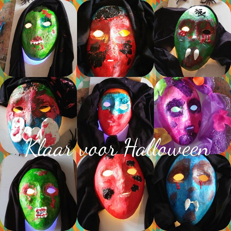 Of maak een bijzonder Halloween masker met lichtgevende verf en een speciale techniek zodat je opgeblazen pukkels krijgt.