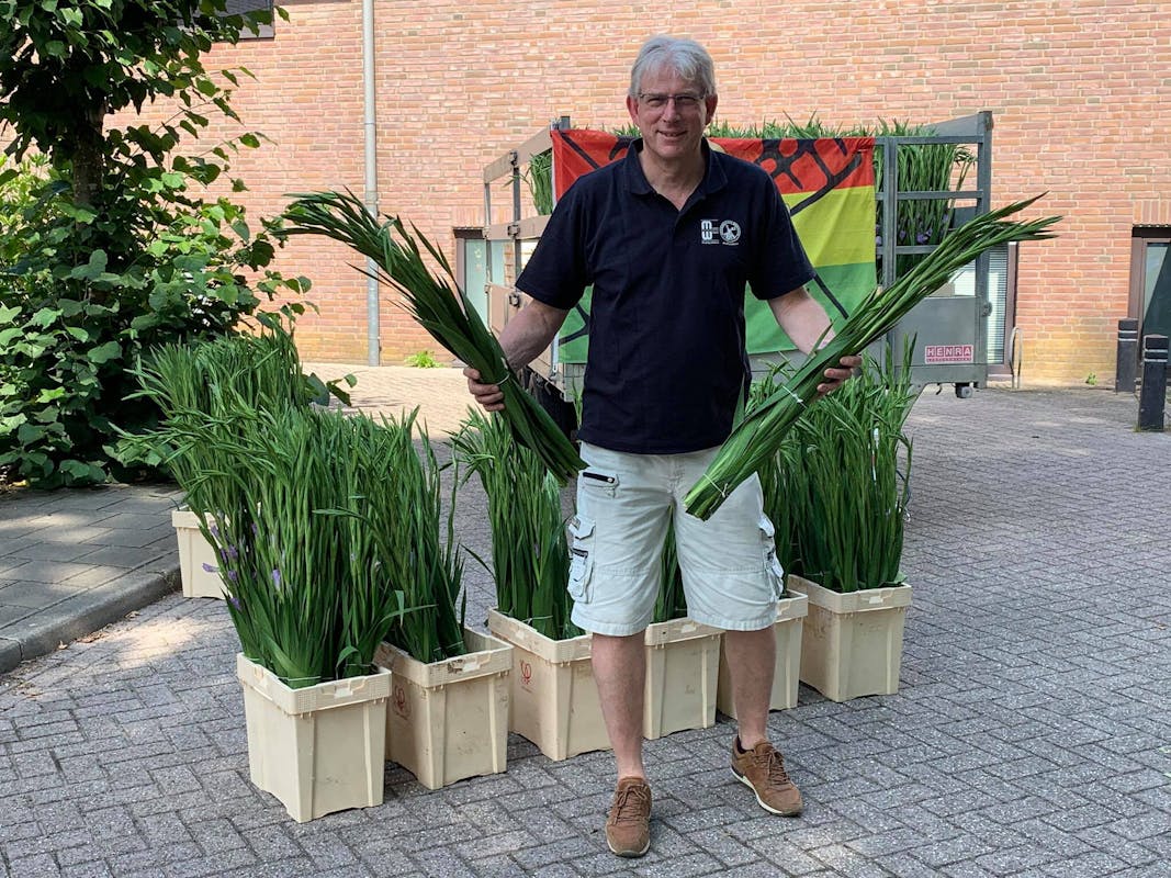 “Breng uw huis in Vierdaagse-sferen en ondersteun daarmee de Meulenwiekers, door de aanschaf van twee grote bossen prachtige gladiolen, voor een Meulenwieker-vriendenprijs van € 5,- “