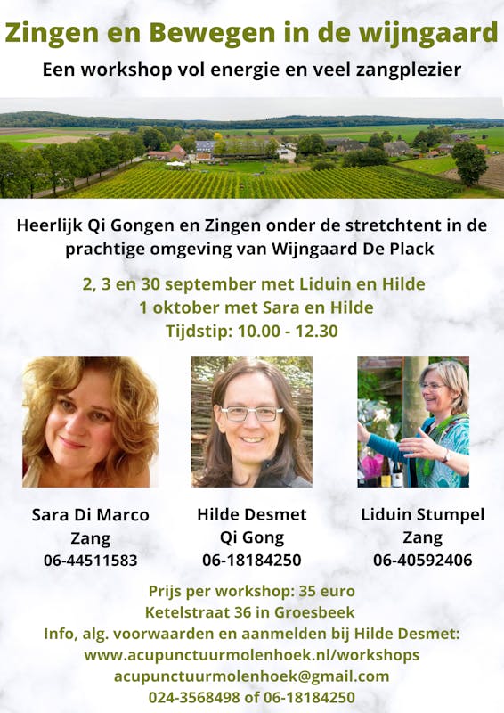 Begin de dag met Qi Gong begeleidt door Hilde Desmet, waarna we heerlijk gaan zingen met Sara Di Marco.