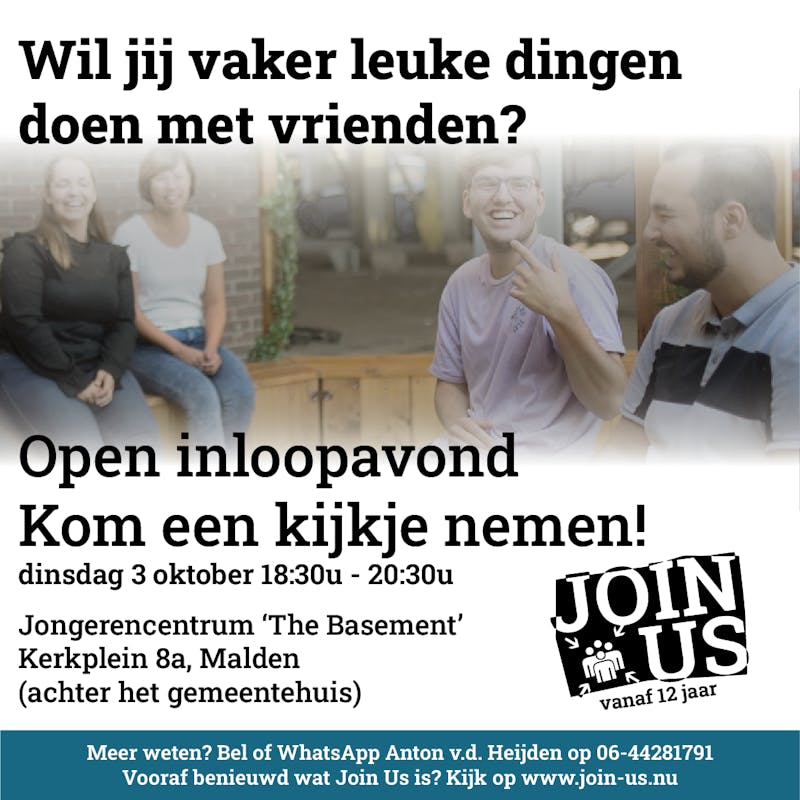 Kom op dinsdagavond 3 oktober naar Jongerencentrum the Basement in Malden.