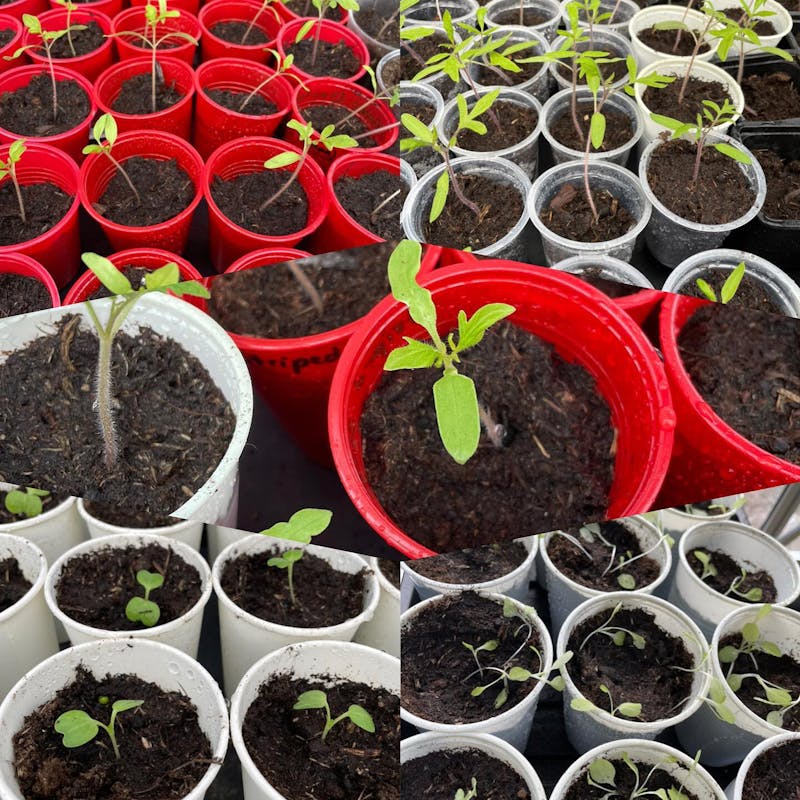 Wij verpoten onze zaailingen in bekertjes. Daarvan zetten we straks een groot deel, als ze groot genoeg zijn, gratis langs de weg. Zo maken we samen Mook en omgeving nog groener! Het liefst gebruiken we kartonnen bekertjes, maar hergebruik van plastic bekertjes is ook fijn.