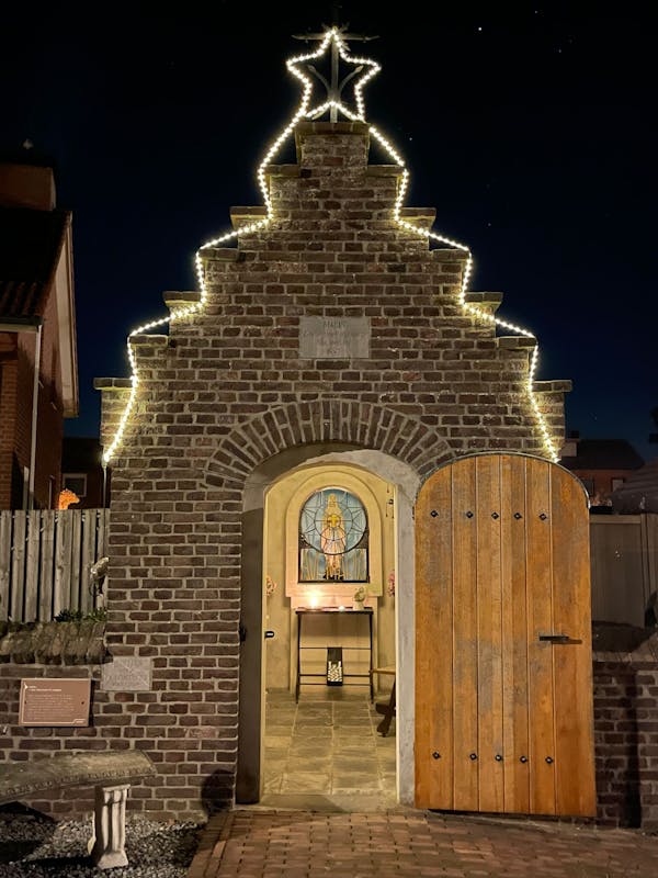 Voor degenen die een kaarsje op willen steken of gewoon maar even wat willen overdenken, zijn de kapelletjes in onze gemeente altijd open. Op de foto het mooi verlichte kapelletje van de Eindweg in Middelaar maar ook op de Riethorsterweg en bij het Zwaantje in Mook staat een kapelletje