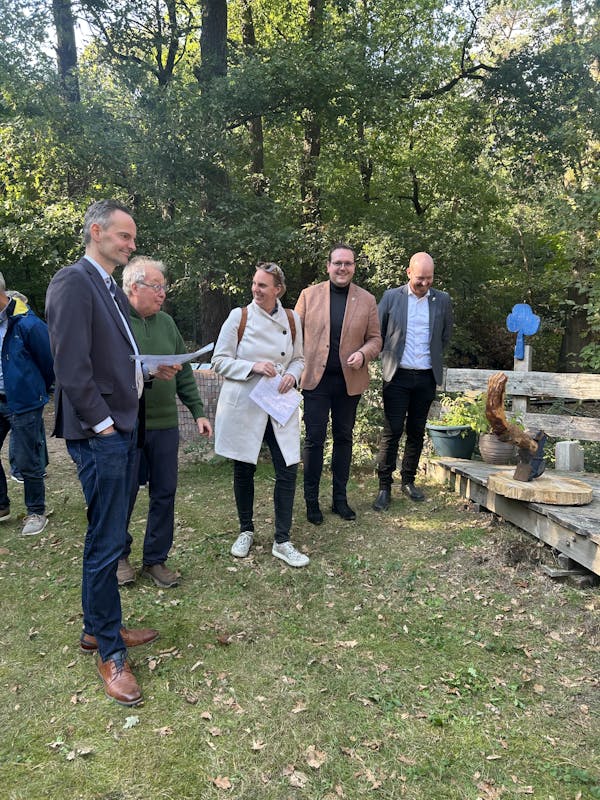 Bij bestuurslid Renate thuis stond de tafel vol koffie, thee en heerlijk zelfgebakken appelgebak. Terwijl er werd gesproken over de ontwikkelingen op de Bisselt, deelde bestuurslid én imker Erik zijn enthousiasme over de biodiversiteit in de wijk. Het was een topjaar voor zijn Bisseltse boshoning – en dat konden de collegeleden zelf proeven, want iedereen kreeg een potje honing mee naar huis.