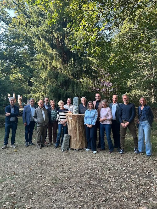 Daarna ging het gezelschap op pad naar een bijzondere buitenexpositie in de tuin van Bisseltbewoner Peter. Tussen het groen stonden zo’n veertig beelden en kunstwerken opgesteld, gemaakt door Bisseltbewoners zelf.