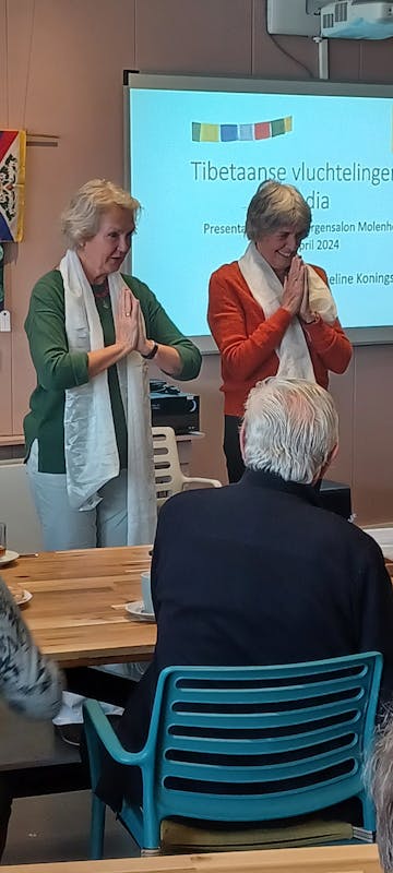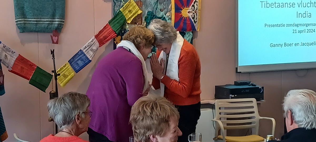 Het tweede deel van de salon was helemaal gewijd aan de cultuur van Tibetaanse vluchtelingen in Noord-India. Ganny Boer uit Malden en Jacqueline Konings, net terug uit het gebied waar ze een aantal vluchtelingenkolonies bezochten, gingen in op de geschiedenis van de vluchtelingen uit Tibet. Ze vertelden over de alleenstaande Tibetaanse ouderen die ze bezochten in het kader van de Ama Youdonstichting uit Nijmegen, die deze ouderen bijstaat. En tot slot stonden de Tibetaanse cultuur en het Tibetaans Boeddhisme centraal. Foto's illustreerden de verschillende onderwerpen. In de pauze probeerden enkele bezoekers een Tibetaanse dans na te doen. Best heel moeilijk.