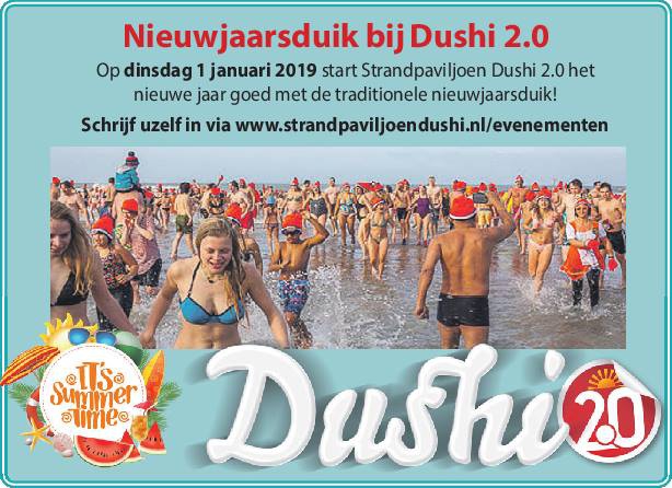 Superstoer. Met het hele gezin? Met vrienden? Vriendinnen? De buurt? Kaartmaatjes, wandelvriendinnen, voetbalclub, fanfare. Vrolijk en Fris het nieuwe jaar induiken. Dushi 2.0 biedt de helden die de duik maken en zich hebben aangemeld, ruimte om zich om te kleden en ondertussen is er gezellige en feestelijke muziek van een groep Everlandermuzikanten uit Middelaar. Het belooft een gezellige happening te worden.
