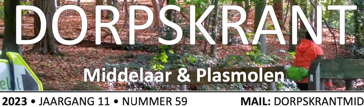 Het is weer wintertijd. Het wachten is op een nachtvorstje en een flinke herfststorm, dan zijn ook alle bomen weer kaal en kunnen de blaadjes keurig in de bladbakken. Of ze worden in de wat wildere tuinen tussen planten en bomen verspreid om het bodemleven te beschermen. De maïs is gehakseld, het verplichte vanggewas is ingezaaid, de bieten en de aardappelen zijn gerooid. De natuur gaat rusten maar de mensen van Middelaar en Plasmolen zitten bepaald niet stil. Ze hebben allemaal wel een hoogtepunt op het programma staan in het staartje van 2023. De Kiste Trui Wandeltocht, het Prinsen- en Jeugdprinsenbal van de Krölstarte, de intocht van Sinterklaas, Kerstmis met de lichtjestocht en veel muziek en de Muziekvereniging met het Top 2000 Café. Ook onze sportverenigingen timmeren aan de weg. Daarover leest u in deze editie van uw eigen Dorpskrant. En over alles wat er nog meer te doen is in en rond de Koppel, het kloppend hart van ons dorp. We wensen u veel leesplezier met nummer 59!