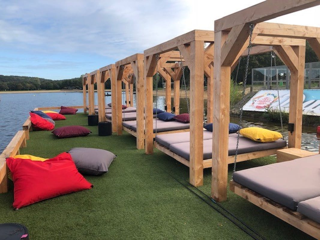 (Maximaal 5 personen, 2 personen per lounge bed en 3 personen kunnen relaxen op ieder zijn eigen zitzak)