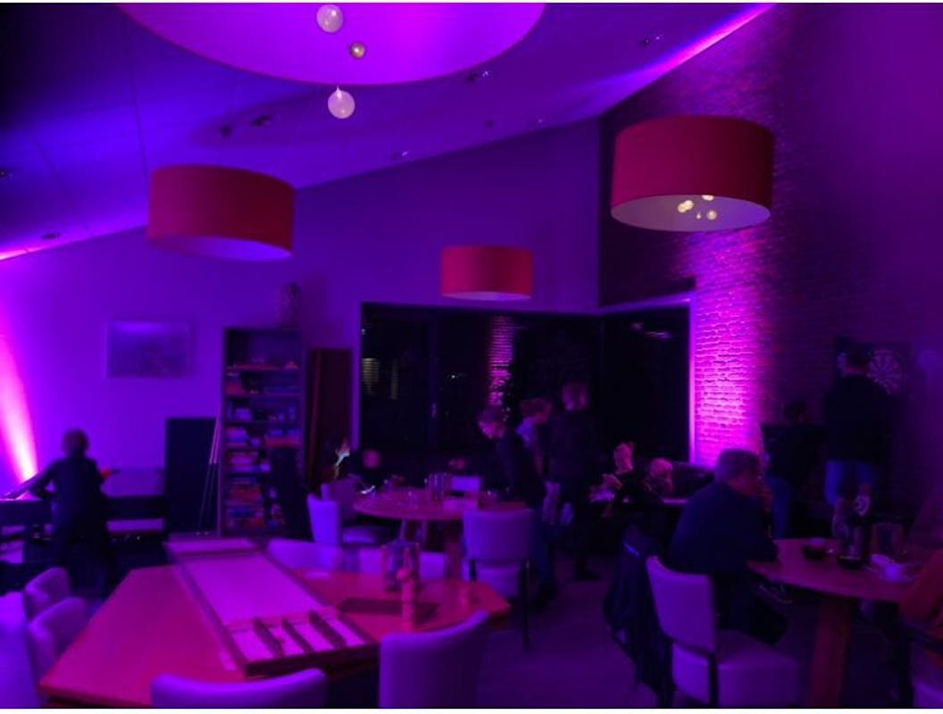 Er waren 12 kinderen, die samen hebben gedart, airhockey gespeeld, sommigen gesjoeld en ook heerlijk alleen maar zitten chillen. Het was heel gezellig, de kids kregen het eerste drankje aangeboden door de dorpskamer, en er stond iets om te knabbelen op tafel.