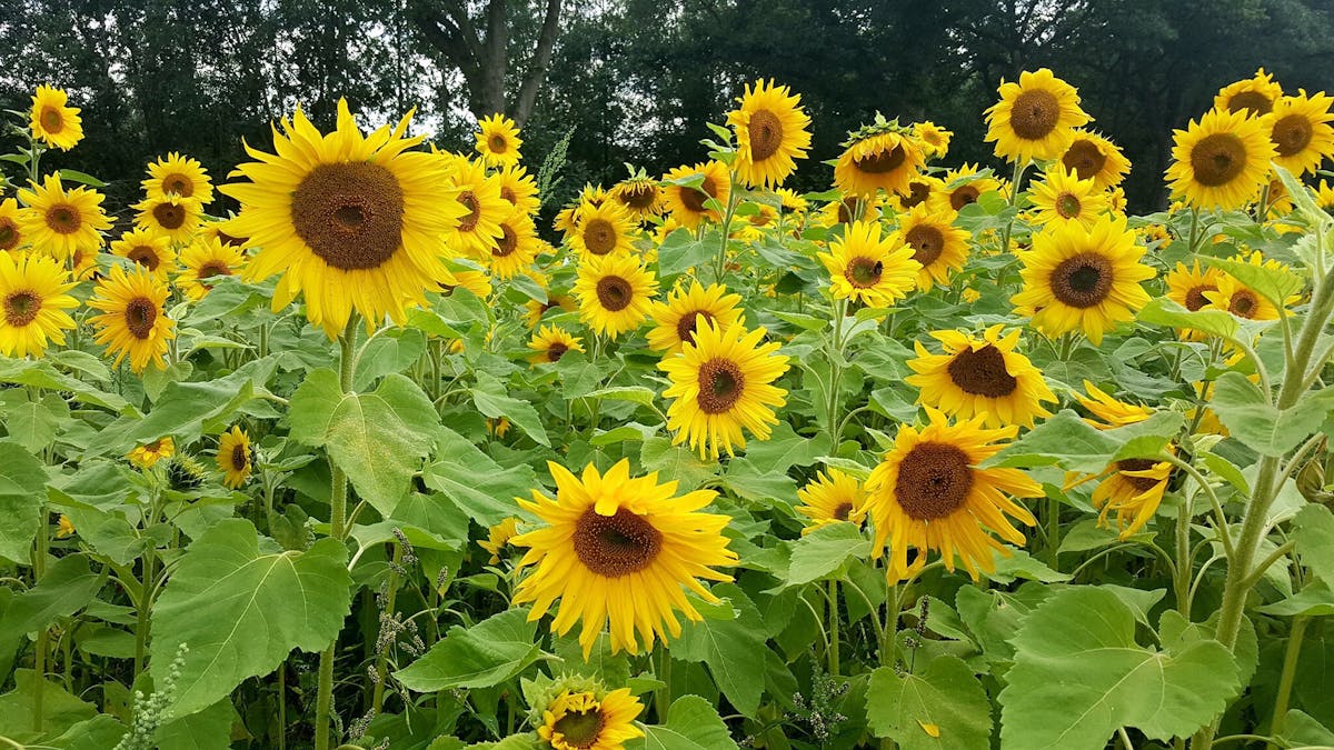 Vrolijk: “Boven heb ik twee zonnebloemen, zal ik daarmee op de foto gaan!?”