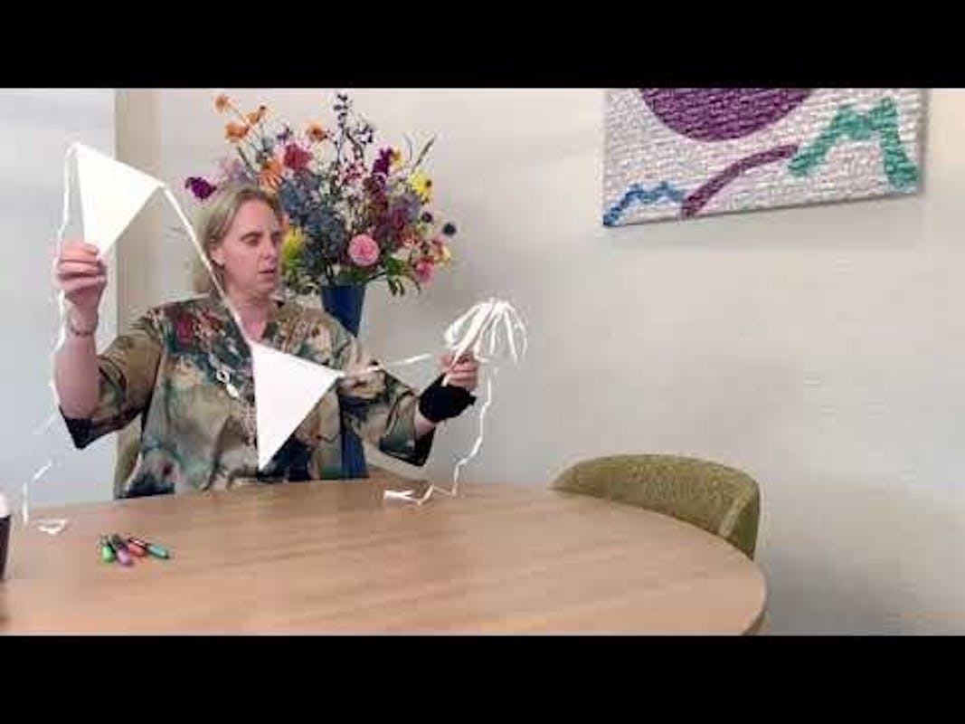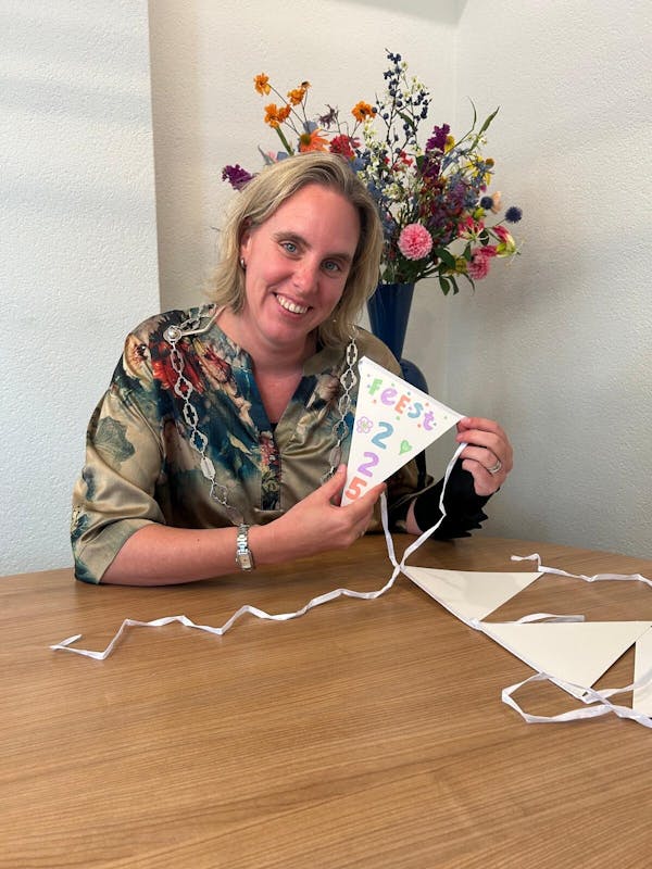 Alle klassen hebben een slinger met witte vlaggetjes gekregen: de jongere kinderen van papier, de oudere kinderen van plastic. Zij maken de vlaggetjes vrolijk met kleuren en tekeningen. Daarna hangen we de slingers op bij en in het gemeentehuis, zodat iedereen kan meegenieten. Burgemeester Inge van Dijk: “Ik vind het prachtig dat juist de kinderen onze historische dag zo feestelijk maken. Hun creativiteit brengt echt kleur in dit jubileum.”
