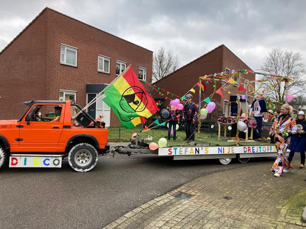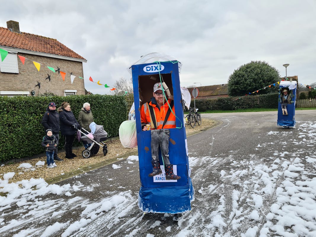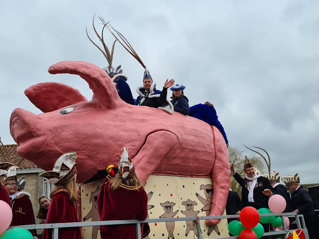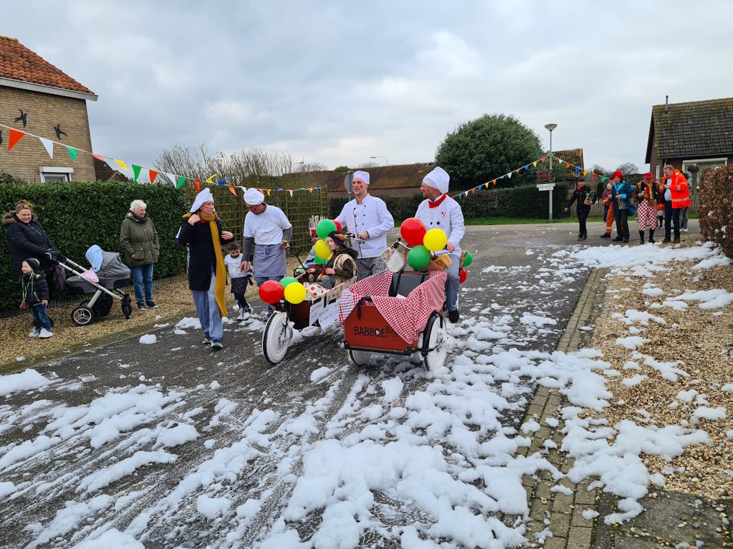 Wat was het weer een feest met de optocht in Middelaar! Iedereen had erg zijn best gedaan. De feestfabriek was er bij in al zijn grootsheid en daar moesten wat obstakels langs de weg voor worden verwijderd maar het feesten ging maar door. We hadden ook een schuimkanon zodat iedereen in de sneeuw kon dansen. Een rad van fortuin kwam ook voorbij en als je de haan kon draaien mocht je een liedje kraaien. Als laatste kwam onze boerenbruidegom Robert, zeker te lang opgehouden bij zijn boerenbruidje. Hoewel uit betrouwbare bronnen hoorde ik dat hij altijd te laat was. Daarna nog wat feestvierders op de fiets en toen ging het feest ien d'n Trog verder. Fijne carnaval allemaal. Alaaf alaaf alaaf!