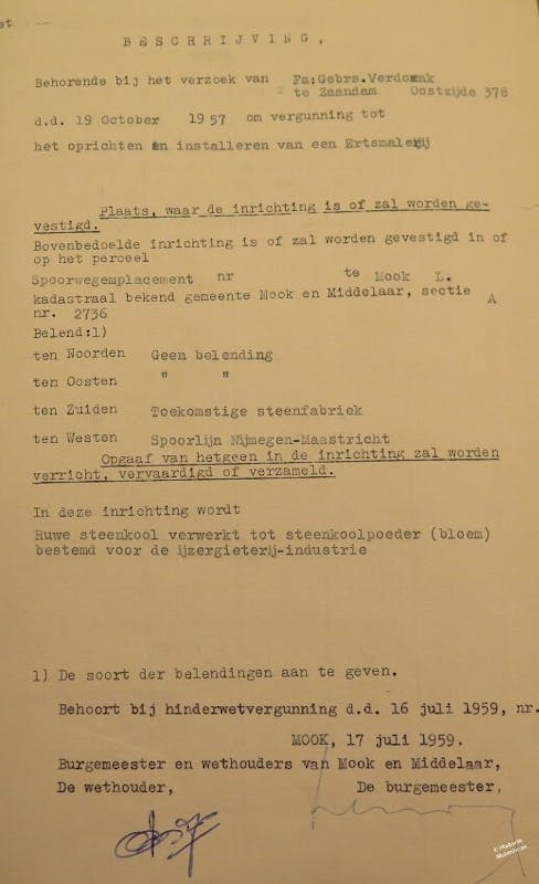 Vanuit Rotterdam werd antraciet aangevoerd; dat werd gemalen - ‘zo fijn als Buisman’, zegt Janny . Het gemalen product (steenkoolpoeder) was nodig in de gieterijen (b.v. voor de fabricage van deksels voor water- en rioolputten) . Het poeder zorgde er voor dat het ijzer los van het zand in de mal bleef. In de gieterijen was ook een speciaal soort zand nodig en dat zat bijvoorbeeld in de grond bij Tegelen, Terborg (Achterhoek) en Bergen op Zoom, vandaar dat daar veel gieterijen voorkwamen. Het steenkoolpoeder ging aanvankelijk in zakken van 50 kilo – daarna in vrachtauto’s - en dat werd vervoerd naar de gieterijen. Later werden chemische middelen gebruikt en verdween de ertsmalerij in Molenhoek (in 2000). Ook de strengere milieueisen waren mede een reden om te stoppen. Bovendien werden ook steeds meer huizen gebouwd in de omgeving van de fabriek en de bewoners klaagden vaak over geluidsoverlast, zeker in de ochtend als Jaap de aggregaten startte om 07.00 uur. Dat opstarten werd vanwege die geluidsoverlast verlaat tot half acht. Een vreemde gang van zaken. Het is net als op het platteland. Als je gaat wonen naast b.v. een varkenshouderij moet je niet gaan klagen over stankoverlast. Dan had je ergens anders moeten gaan wonen. Of zoals Janny anekdotisch vertelt: ‘Ik heb ook nog vijf jaar hier op de basisschoolschool De Grote Lier gezeten. Tussen de middag gingen de kinderen even naar buiten, lekker spelen. Komt er een mannetje voorbij die vroeg of de kinderen niet stiller konden zijn, omdat er in de buurt mensen wonen’.