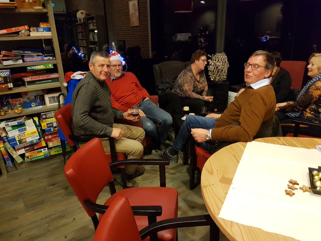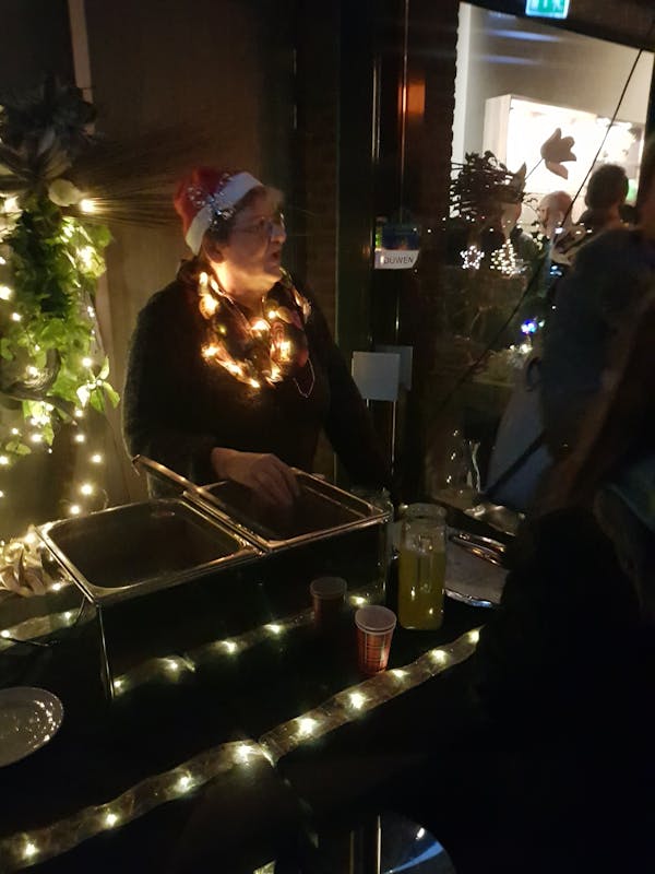 Ondanks dat de lichtjes optocht vanwege de regen niet door ging was het samenzijn in de kerk en daarna in de Koppel heel sfeervol en gezellig. Voor de Koppel stond de Kerststal en in de hal kregen we van Kosien chocolademelk of glühwein. In de Koppel werd Karin geholpen door Romy en Elke en door onze vrijwilligsters Henriëtte en Diny. Iedereen kon genieten van de muziek van Divers en Voicesfourfun en ook een prachtig Felice Navidad schalde door de microfoon. Gezellig met elkaar kletsen kon in de Dõrpskamer en bij de bar en dat werd dan ook volop gedaan. Bij het afscheid werd aan elkaar fijne Kerstdagen gewenst en zo was het dus toch een geslaagde avond geworden met dank aan de "nieuwe" organisatie van de lichtjesoptocht.