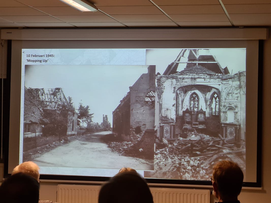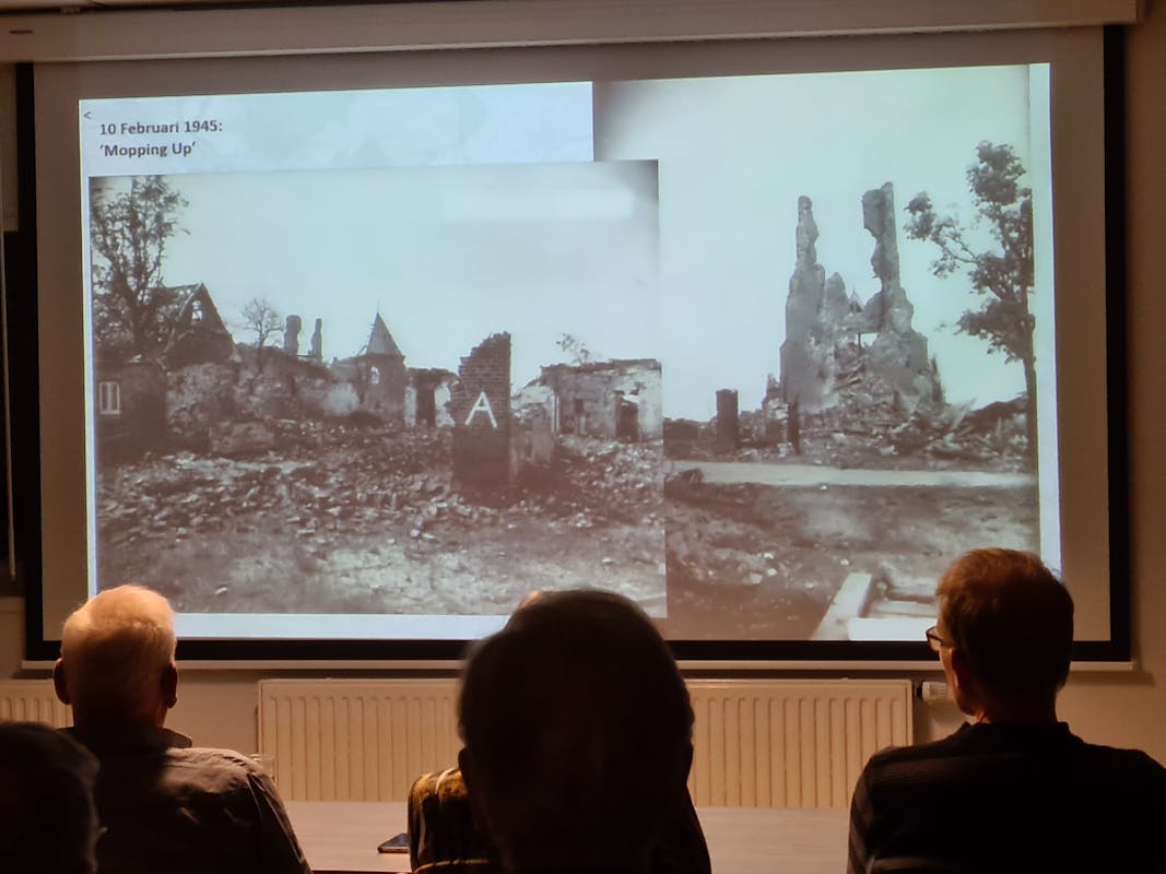 Gisteravond hebben 31 leden van de buurtverenigingen "De Katerbosch" en " De Kamp" een indrukwekkende avond in de Koppel in Middelaar gehad. Frank van Duin heeft ons, aan de hand van kaarten, stukjes film en foto's door de oorlogstijd in Middelaar en de wijde omgeving heen geleid. De strak geplande operaties werden door Frank duidelijk uit de doeken gedaan. Ook de zaken die door toevalligheden mis gingen en grote gevolgen hadden zijn door hem goed uitgelegd. Daardoor werd ons beeld over wat er allemaal in onze dorpen is gebeurd en waardoor er van ons dorp nog maar een paar huizen overeind stonden, nog duidelijker. Het staat in onze geheugens gegrift en mag nooit meer voorkomen. Hopelijk denkt iedereen er zo over. Meer informatie kunt u hier vinden.