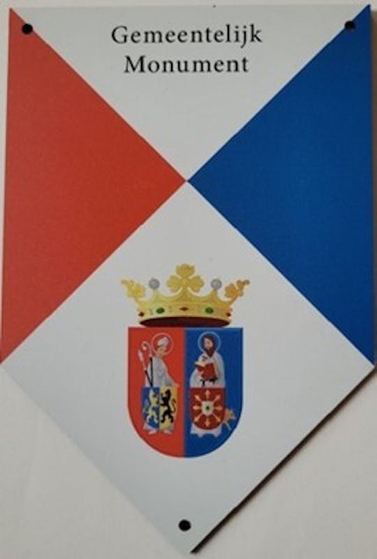 In de aanloop van de Open Monumentendagen heeft het Erfgoedplatform een schildje ontworpen voor de gemeentelijke monumenten. Dit in de kleuren van de gemeente Mook en Middelaar en met het wapen erop.