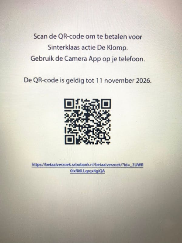 Zoals ieder jaar maken we dit feest mogelijk met de klompenactie. Tussen 3 en 14 november wordt er met de klomp gelopen. U kunt contant bijdragen of gebruikmaken van de QR-code voor een digitale bijdrage. Wilt u meehelpen door in deze periode een stukje met de klomp te lopen, laat het ons dan weten.