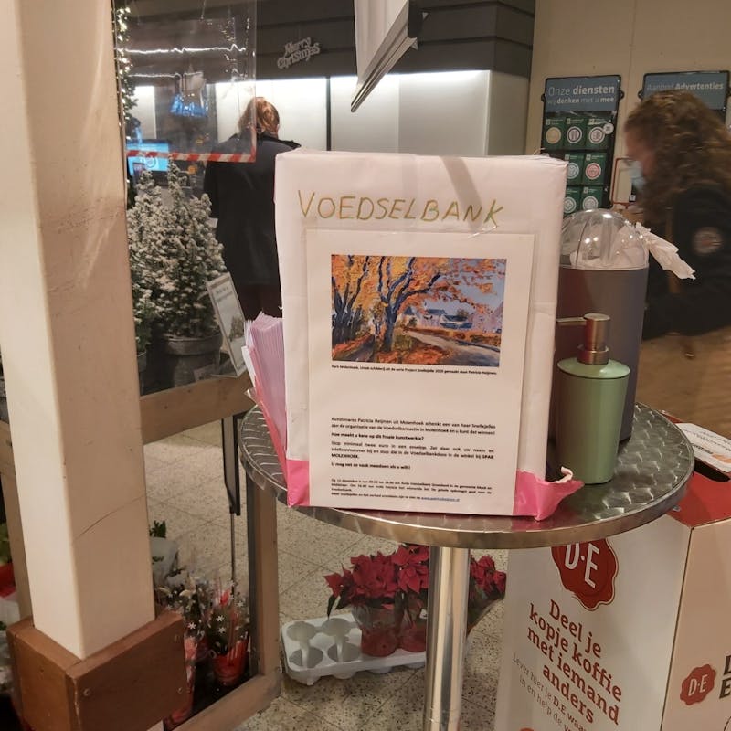 Wie weet inspireert het andere kunstenaars om op die manier ook een bijdrage te leveren aan Voedselbank Groesbeek?