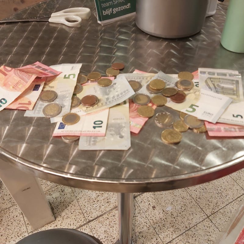 Patricia maakte een bus met daarop een afbeelding van haar kleurige Snellejelle En in die bus konden de mensen die het een mooi schilderijtje vonden hun n.a.w. gegevens en geld achterlaten.