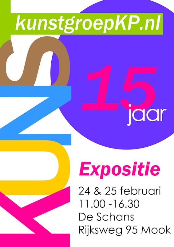 In 2024 bestaat Kunstgroep KP alweer 15 jaar! Om dit te vieren exposeren de leden, waaronder schilders, een fotograaf en 3D’ers, op 24 en 25 februari in de Schans in Mook. De getoonde werken, variëren van klassiek en figuratief tot abstract. Tijdens het weekend zijn de kunstenaars aanwezig om te vertellen over hun werk en inspiratiebronnen. Van harte welkom!