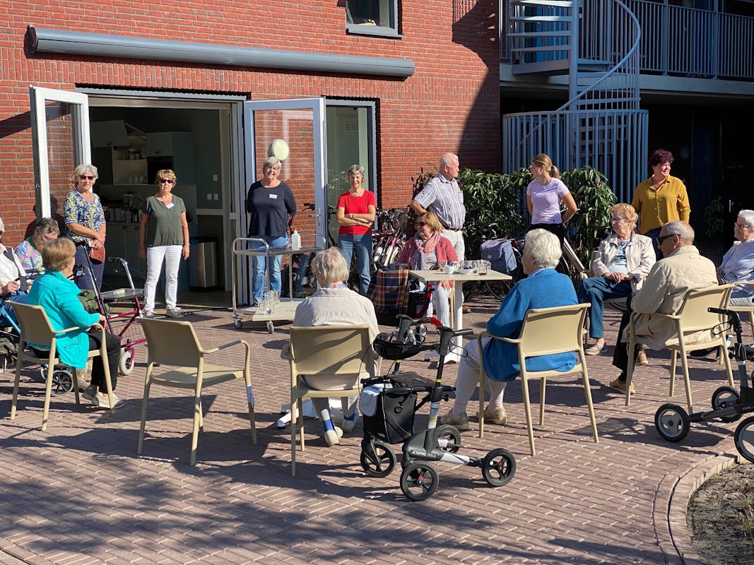 In de eerste bijeenkomsten hebben we aan de hand van die pijlers van ‘positieve gezondheid’ gekeken waar mensen behoefte aan hebben. Zo kwam er bijvoorbeeld uit dat er behoefte is aan een happy hour op de soms saaie zondagmiddag, of dat men de Natuurbegraafplaats wel eens zou willen bezoeken, of de nieuwe fietsbrug zou willen bekijken, of een terrasje zou willen pikken. En dat gaan we dan samen regelen. We hebben daarbij echt heel veel aan de hulp van de vrijwilligers en een stagiaire van de HAN. En op een van de bijeenkomsten kwam de burgemeester ook een kijkje nemen. Hartstikke leuk toch?!