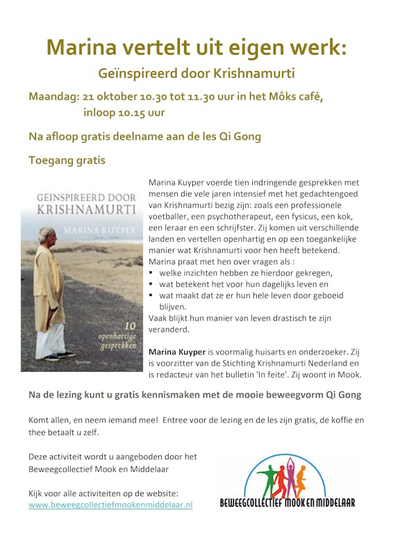 Marina verzorgt een lezing hierover op maandag 21 oktober van 10.30 tot 11.30 uur in het Moks café.