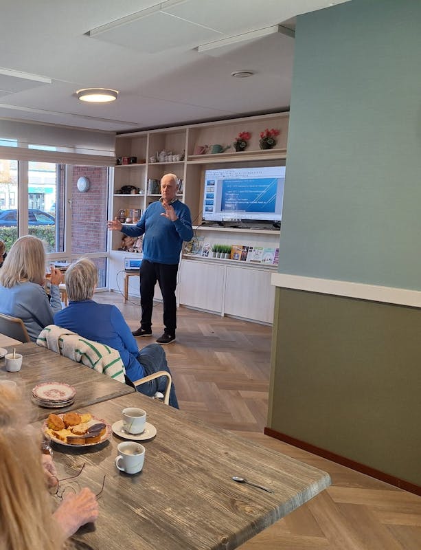 Vandaag was er weer een gezellige bijeenkomst. Joop Troost uit Middelaar vertelde, dat kan hij goed en onderhoudend! Enkele maanden geleden vertelde hij over het ontstaan van de Mookerplas. Nu bracht hij mooie, spannende, verdrietige en vrolijke verhalen mee over zijn werkzaamheden als beheerder Mookerplas.