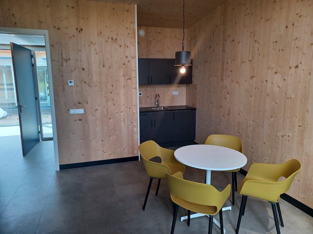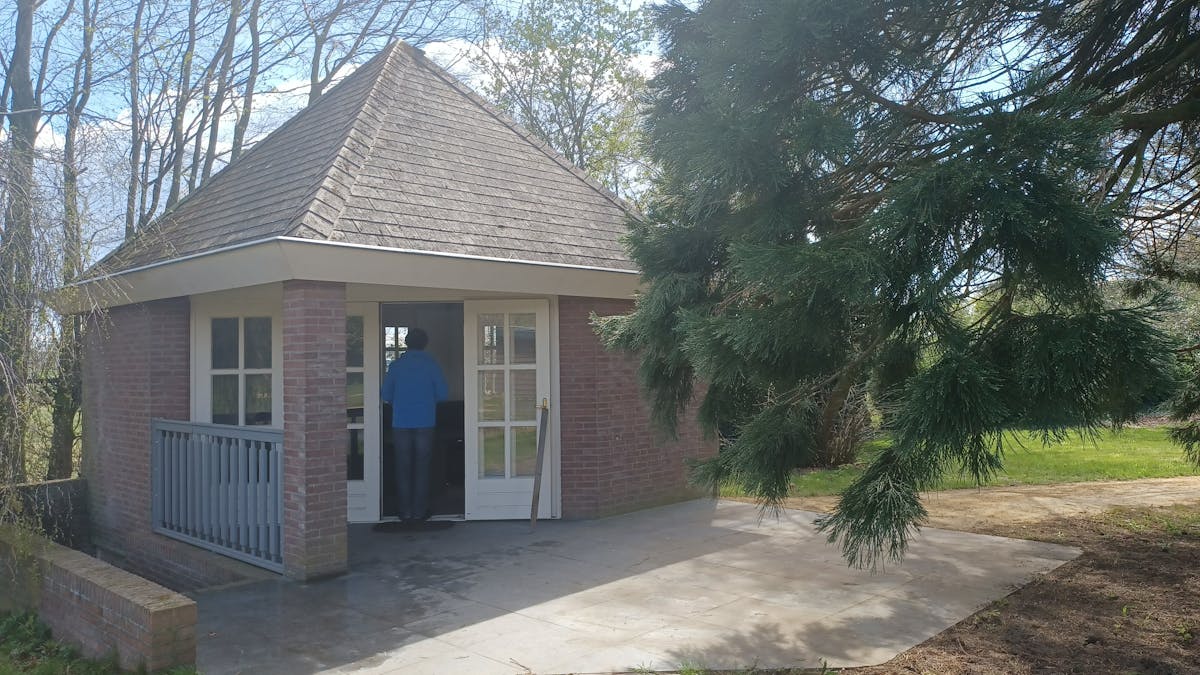 Buiten het hospice staat een klein gebouwtje met als inrichting een heel groot bankstel en dat dienst doet als stilteruimte.