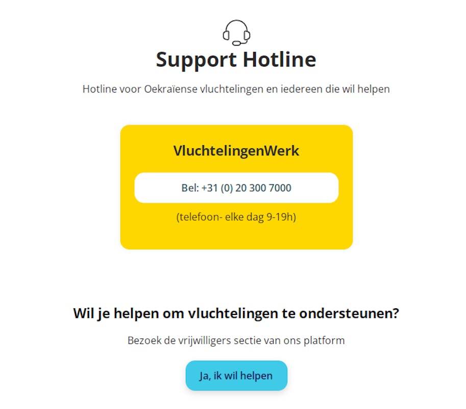 RefugeeHelp.nl is het online startpunt voor Oekraïense vluchtelingen in Nederland en iedereen die zich voor hen wil inzetten. Je vindt hier - in het Oekraïens, Russisch, Engels en Nederlands - veel informatie over onder meer onderdak, onderwijs, werk en inkomen.