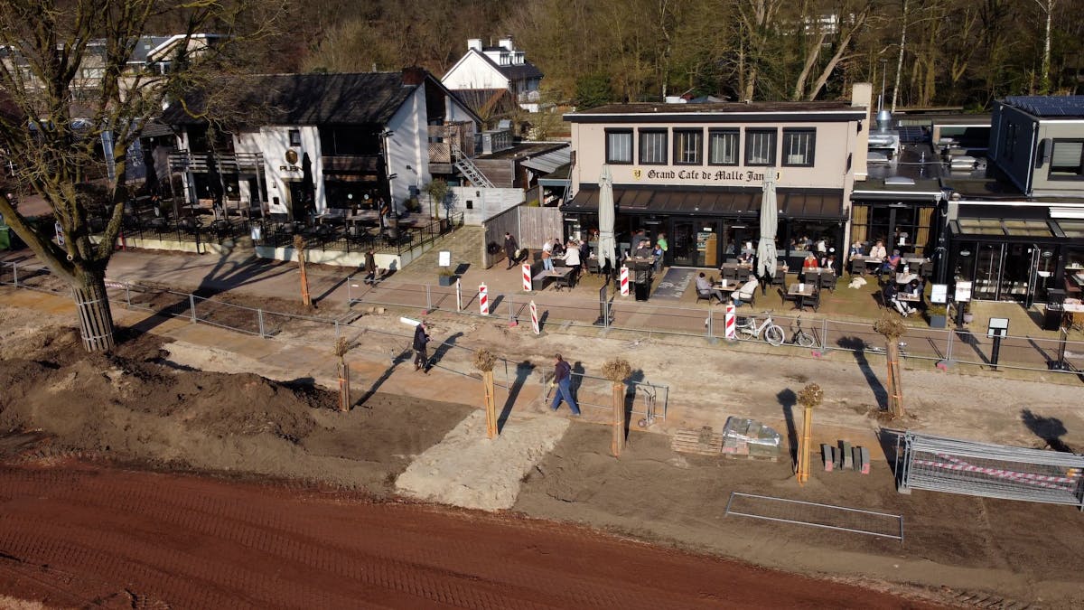 We zijn nu precies vijf werkdagen verder. Wat is er al gruwelijk veel werk verzet. De asfaltvlakte van voorheen is opgebroken en afgevoerd. Nu zien we de contouren van het nieuwe hart al tevoorschijn komen. De rode kleur wordt straks bestraat met grasbetonstenen die gevuld worden met een halfverharding. Deze gaan dan fungeren als de toeritten naar de afzonderlijke parkeerplaatsen. Deze parkeerplaatsen (geel-wit) worden ook voorzien van grasbetonstenen maar die worden gevuld met grond en daarna ingezaaid met gras. Goed te zien zijn de vijf plantvakken tussen de parkeerplaatsen. Twee grote plantvakken, een op het begin en een op het eind. Daartussenin drie kleinere plantvakken. In ieder plantvak komt straks 'n boom. Vandaag werd er volop gewerkt aan het vullen van deze plantvakken. Zwarte grond word gezeefd en daardoor ontdaan van boomwortels en puin. Een filmpje van de werkzaamheden vandaag met een beetje de nadruk op het zeven van de grond.