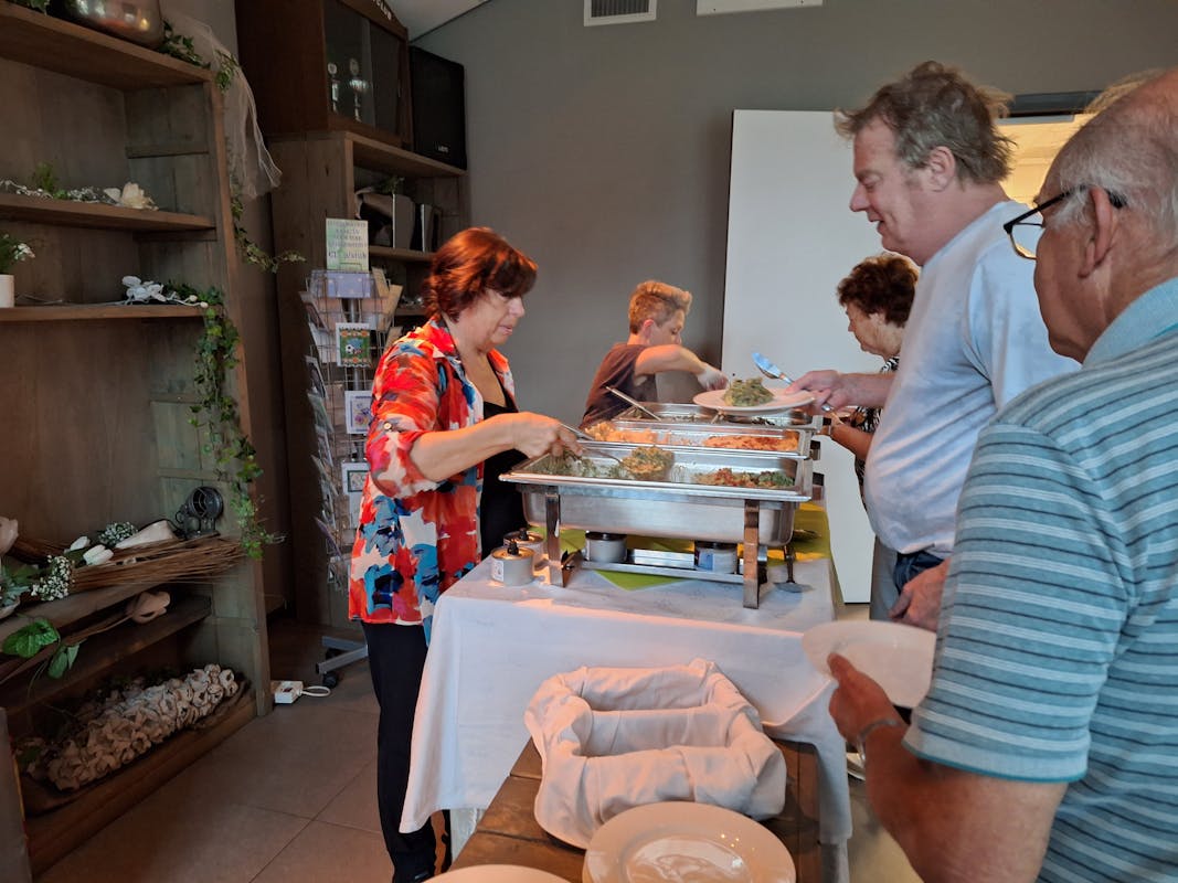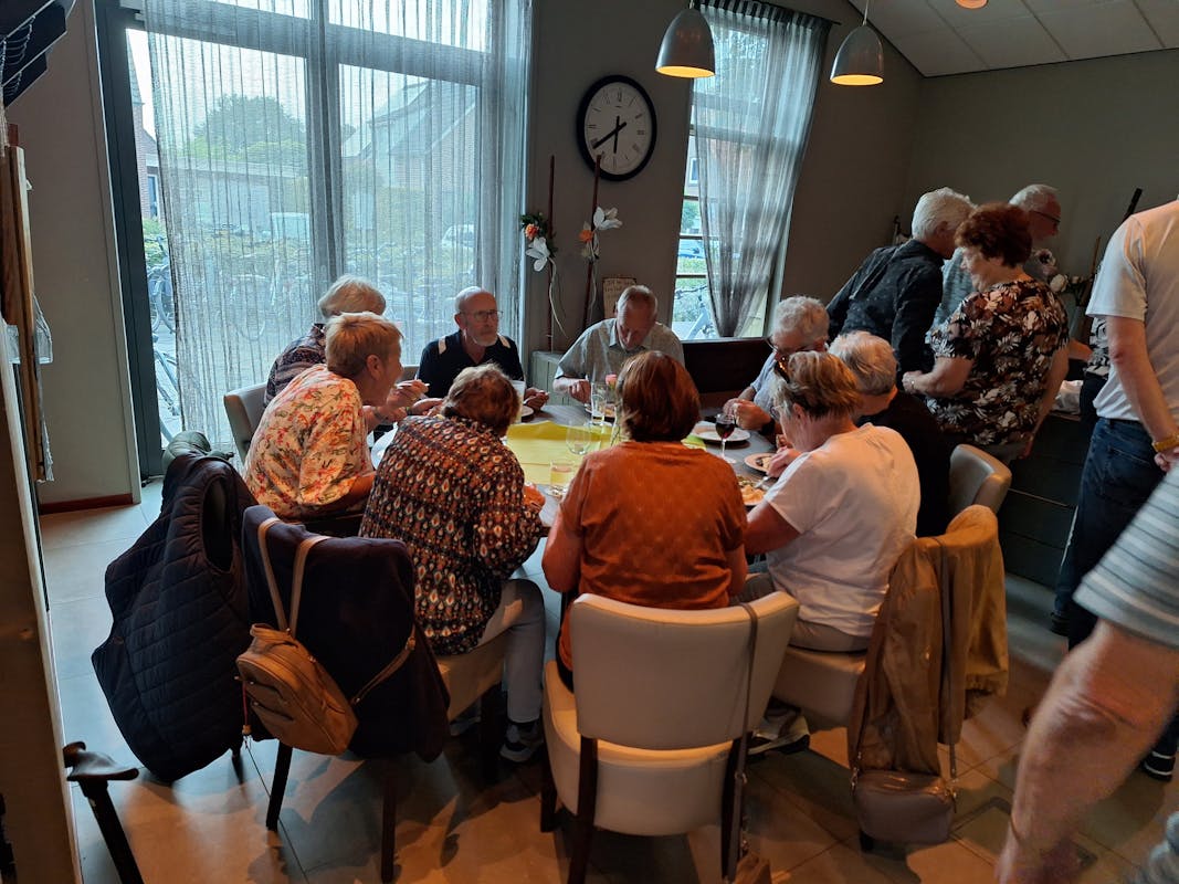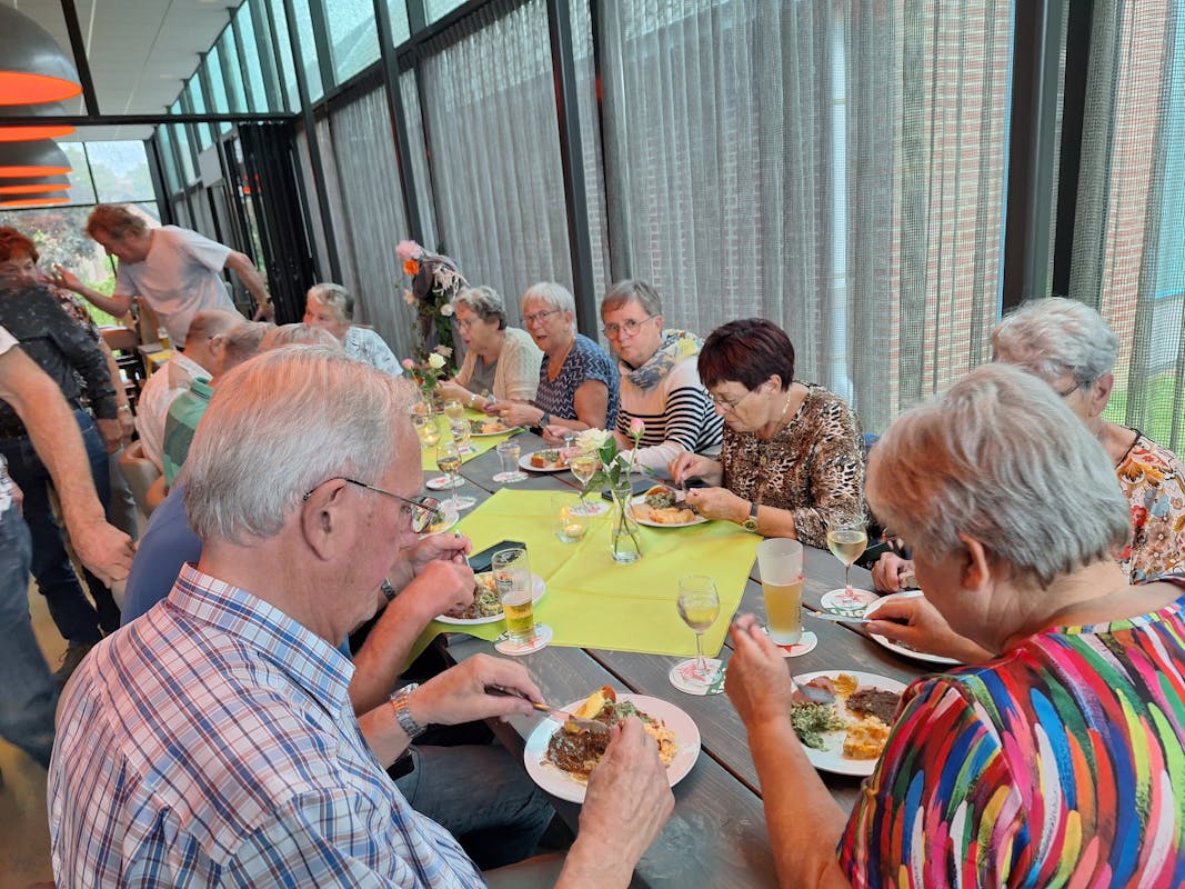 Wat een prachtige dag voor een wandeling was het afgelopen donderdag! En dat hebben meer dan 30 inwoners van Middelaar en Plasmolen gedaan in het Zevendal. Met veel mooie verhalen van Gerrit ten Haaf erbij, hebben ze een mooie wandeling gemaakt van 5 km en 300 meter. Ze waren begonnen met koffie met gebak bij Gerrit en Kosien. Degenen die niet mee konden wandelen, konden daar gezellig blijven kletsen of spelletjes doen. Na de wandeling stond bij de Koppel het stamppottenbuffet al klaar. Wat hadden Karin, Clara, Tineke en Miriam er weer een werk van gemaakt! De tafels waren leuk gedekt en het eten was heerlijk en dan kwam het toetje nog! Iedereen was gezellig aan het kletsen, behalve als er gegeten moest worden natuurlijk. Een drankje hoorde er ook bij en zo gingen ze allemaal weer tevreden naar huis!