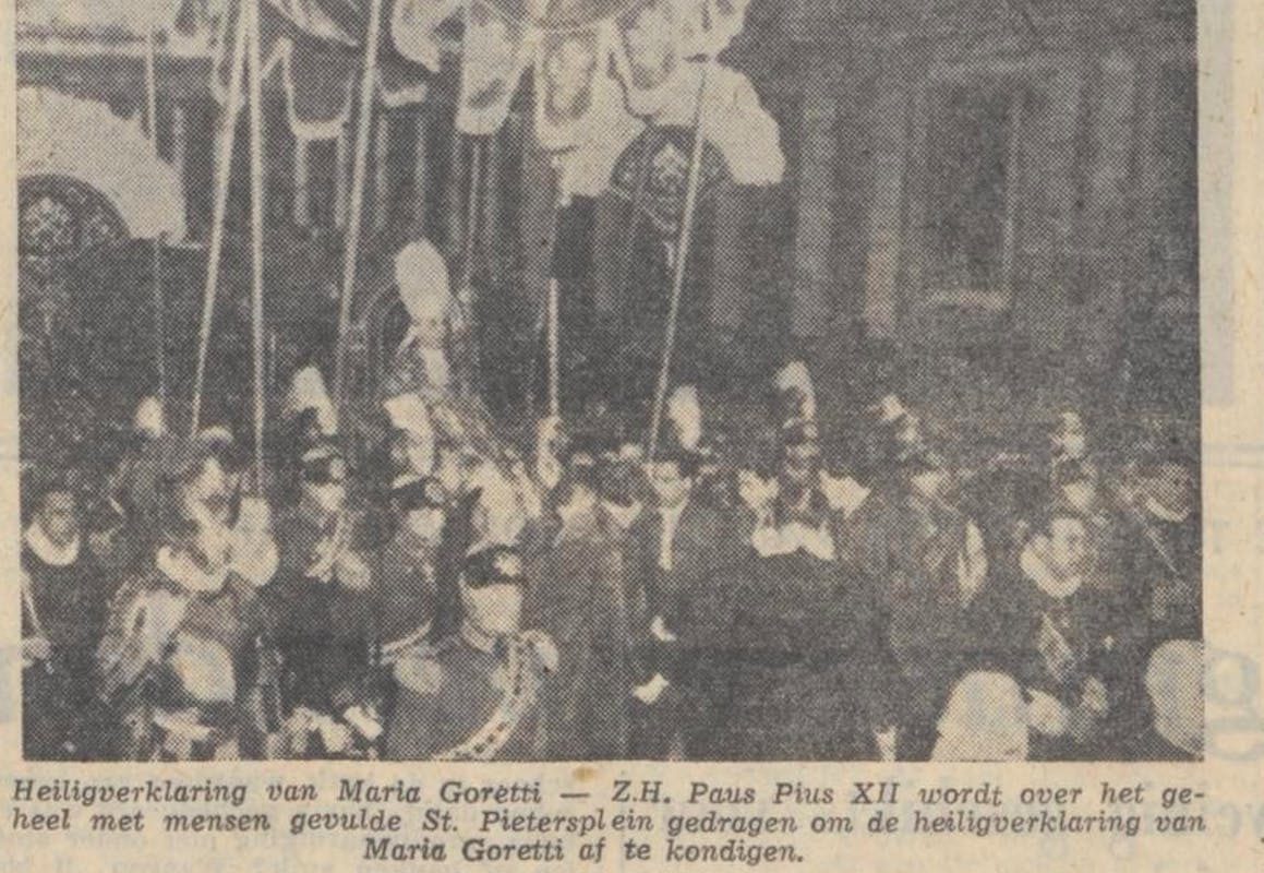 Een dag nadat Pius XII, gedragen over het geheel met mensen gevulde St. Pietersplein, de heiligverklaring van Maria Goretti afkondigt, schenkt het Limburgsch Dagblad van 27-06-1950 uitvoerig aandacht aan de baggerwerkzaamheden die in heel Limburg plaatsvinden, en dus ook in Mook. Een beetje kritisch geluid. Het verhaal geeft tegelijkertijd inzicht in hoe de grinthandel georganiseerd is. Alle grindboeren die ook tijdens de oorlog actief waren, komen we tegen.