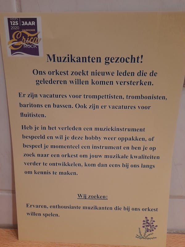 Iedere muzikant die op zoek is naar een gezellig orkest met een afwisselen repertoire wordt van harte uitgenodigd eens te komen kennismaken op onze repetitieavond.