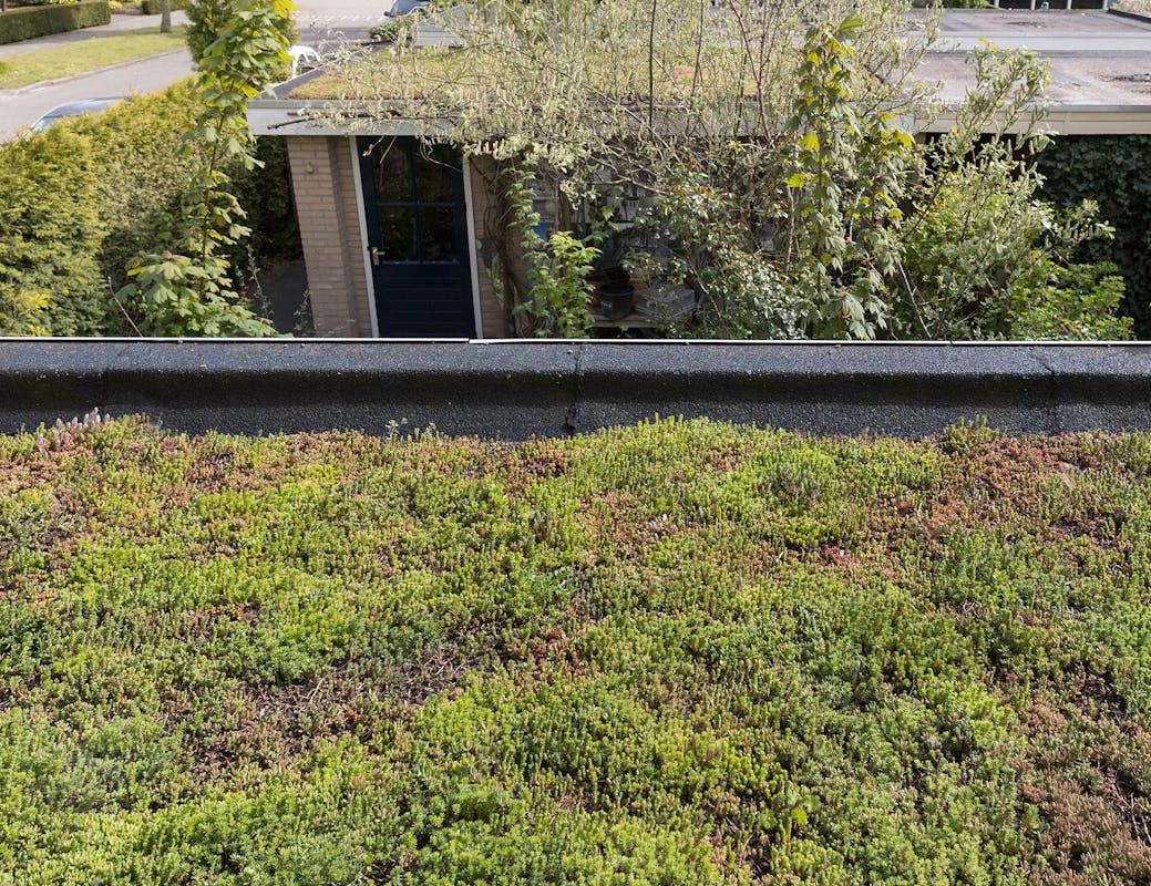 Een groen dak is in breder verband tegelijkertijd een vorm van klimaatadaptatie en een kleine bijdrage aan de biodiversiteit. Een aanpassing van je leefomgeving aan klimaatverandering.