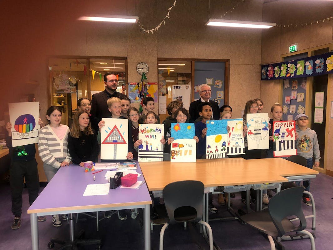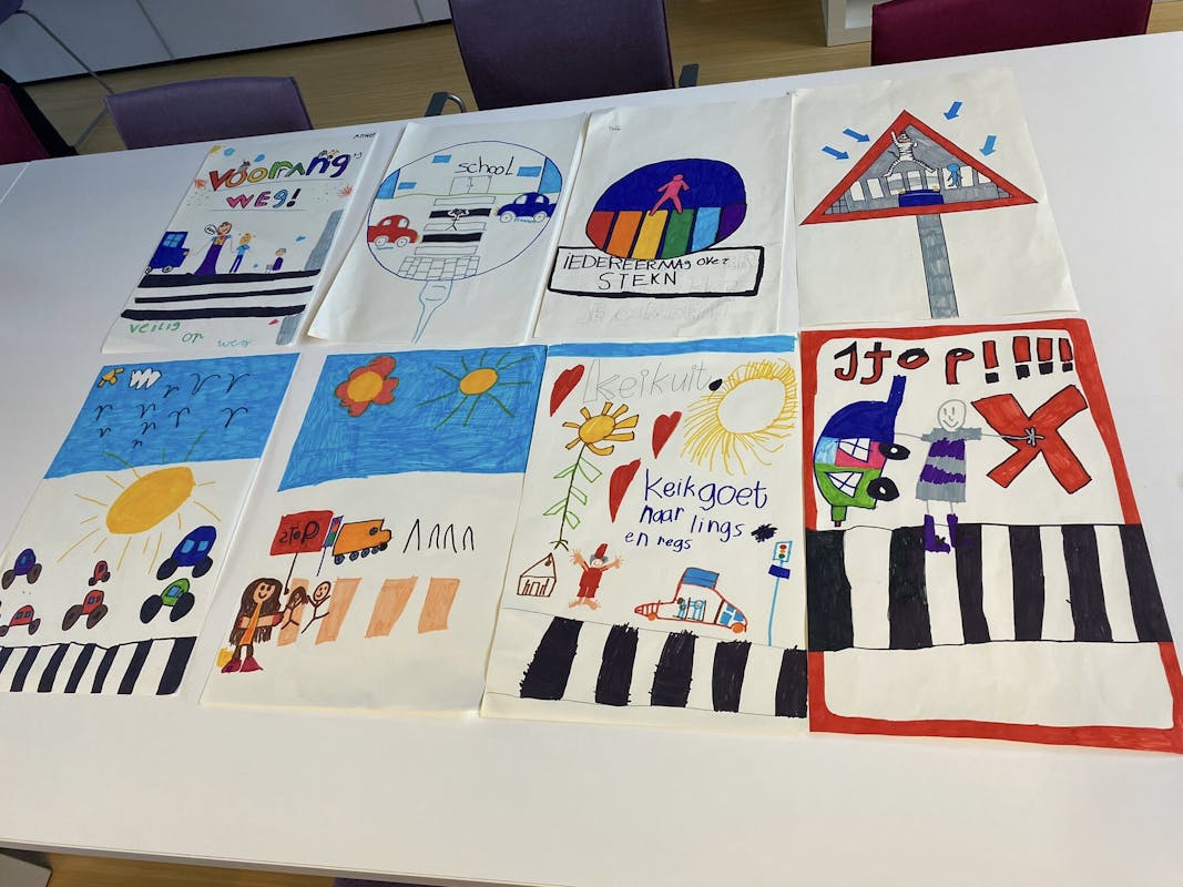 Daarna zijn we in alle groepen op bezoek geweest om de winnaars te feliciteren. Duidelijk werd dat de kinderen hier zelf ook veel van hebben geleerd. Kinderen hebben er zowel op school als thuis over gesproken. De “verkeersborden” komen er om automobilisten meer alert te maken op de aanwezigheid van kinderen in het verkeer.