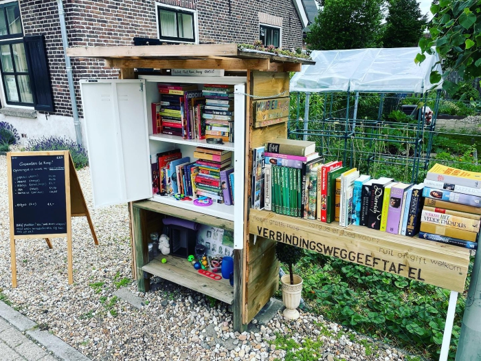 De Verbinding is het initiatief van Jette en Erik die hun boerderijtje uit 1896 hebben omgetoverd in een plek waar groente, fruit, eitjes, zaailingen, speelgoed, boeken en boodschappen worden geschonken en uitgewisseld.