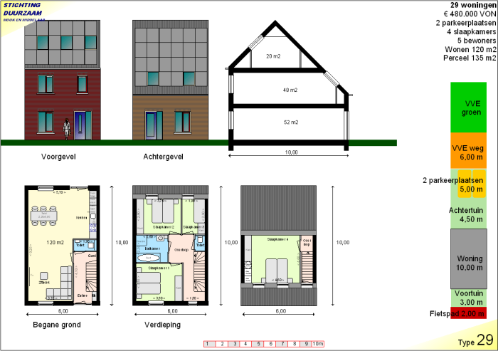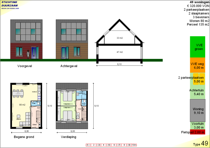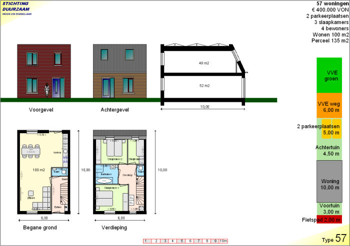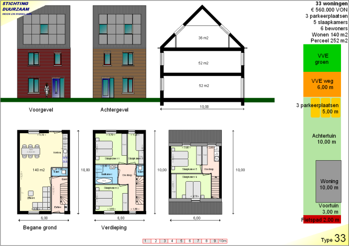 Hypotheekverstrekker: De koper krijgt voor een 100 % energieneutrale woning, een aanvulling op de hypotheek van maximaal € 24.300 waarvoor geen inkomenstoets geldt alsmede op het gehele hypotheekbedrag een rentekorting van 0,5 % en kan daarmee in 10 jaar de meerkosten betalen.