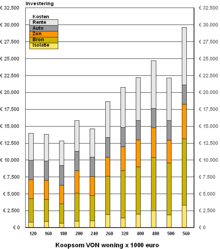 In onderstaande grafiek zijn de investeringen afgebeeld, om te komen tot een 100 % energieneutrale woning.