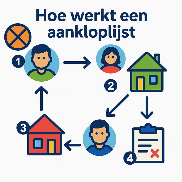 - Tref je iemand niet thuis, dan klop je aan bij de daarop volgende buurman en schrijf je die naam even op een briefje. Dat briefje wordt dan steeds doorgegeven tot het weer uitkomt bij de straatcontactpersoon