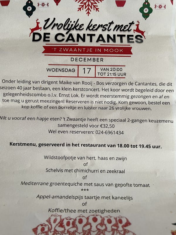 De Cantantes is een zanggroep, bestaande uit zo'n 25 vrolijke tantes o.l.v. dirigent Maike van Rooij. Pianist is Ernst Lok. Er wordt mee......