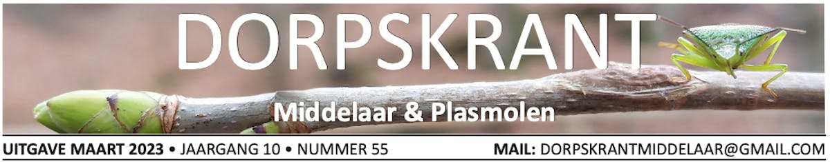 Maart roert zijn staart en niet zo zuinig ook. Het eerste kievitsei is gevon- den, kakelvers, maar half verscholen onder de sneeuw. Het sluipverkeer dat door de afsluiting van de N271 door Middelaar komt, zorgt voor on- veilige en onaangename situaties en voor veel onrust. De verkiezingen zijn achter de rug en ook in Middelaar worden de opdekoppe vlaggen weer omgedraaid. Of vervangen door nieu- we want ze zijn behoorlijk versleten door het winterweer.
