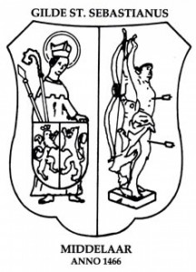 Het gilde is opgericht in 1466 voor de verdediging van het dorp tegen invallen van buitenaf, en het beschermen en hulp bieden aan de inwoners van de gemeenschap. Het was een beetje te vergelijken met de politie en het leger van later. Verder is er niet zo heel veel van die vroegere tijd bekend. Alleen van 1816 tot 1956 is er nog een oud lederen Gilde boek bewaard gebleven. In dat boek staat veel beschreven uit die jaren zoals over het Schepenzegel van Middelaar uit 1604. Dit is waarschijnlijk ook het Embleem van het Gilde St. Sebastianus wat vroeger een Broederschap werd genoemd en in dienst stond van de Schepenbank van de Heerlijkheid Middelaar. Op het oude Gildeboek is nog te zien dat op de voorkant de vorm het Embleem van zilver was. Dit boek is in de Tweede Wereldoorlog met het ander oud Gilde boek met Gilde Zilver gestolen, ondanks dat het op een veilige plek verstopt was. Maar wij zijn van mening dat we dit Zegel wel kunnen gebruiken omdat het een teken is van de verbondenheid met de Heerlijkheid Middelaar, en met de kerk.